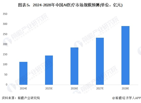 近年来,信息技术的发展,AI应用智能化、高效化、规范化,国民医疗需求的增长,对AI医疗行业需求不断增加。AI医疗市场前景广阔,预计中国AI医疗行业市场规模将会以超过25%的增速保持增长,2028年市场规模将接近300亿元。